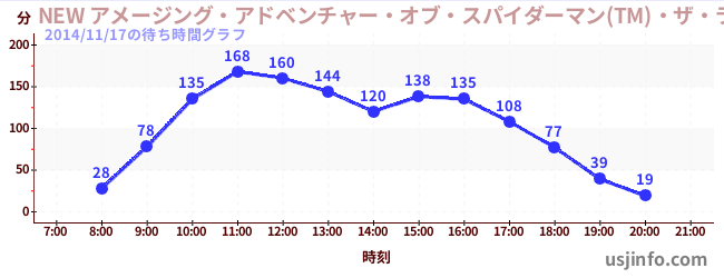 • NEW アメージング・アドベンチャー・オブ・スパイダーマン(TM)・ザ・ライド 4K3D$B$N(B2014年11月17日の待ち時間