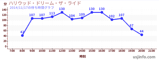 • ハリウッド・ドリーム・ザ・ライド$B$N(B2014年11月17日の待ち時間