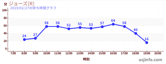 • ジョーズ(R)$B$N(B2019年02月27日の待ち時間