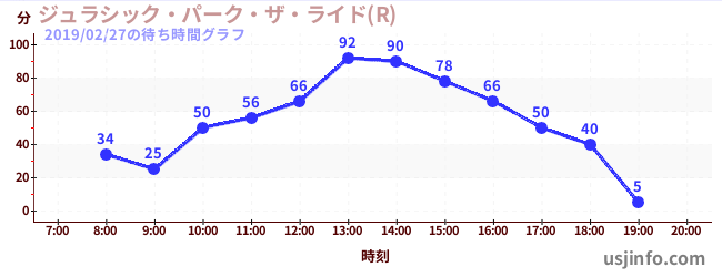 • ジュラシック・パーク・ザ・ライド(R)$B$N(B2019年02月27日の待ち時間