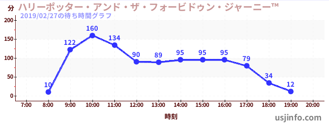 • ハリーポッター・アンド・ザ・フォービドゥン・ジャーニー™$B$N(B2019年02月27日の待ち時間