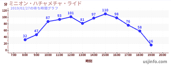 • ミニオン・ハチャメチャ・ライド$B$N(B2019年02月27日の待ち時間