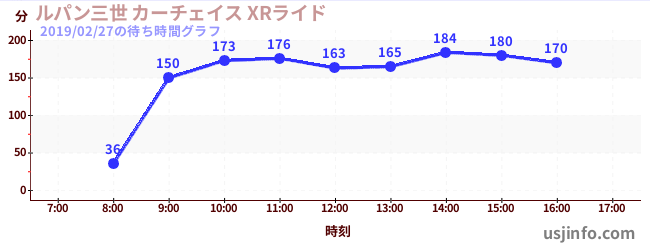 • ルパン三世 カーチェイス XRライド$B$N(B2019年02月27日の待ち時間