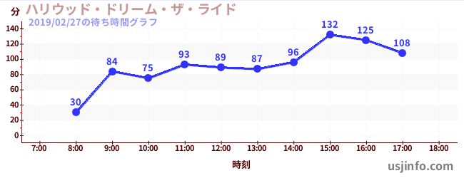 • ハリウッド・ドリーム・ザ・ライド$B$N(B2019年02月27日の待ち時間
