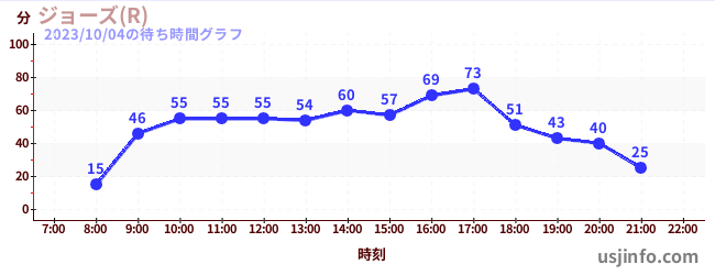 • ジョーズ(R)$B$N(B2023年10月04日の待ち時間