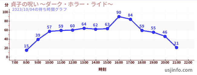• 貞子の呪い ~ダーク・ホラー・ライド~$B$N(B2023年10月04日の待ち時間