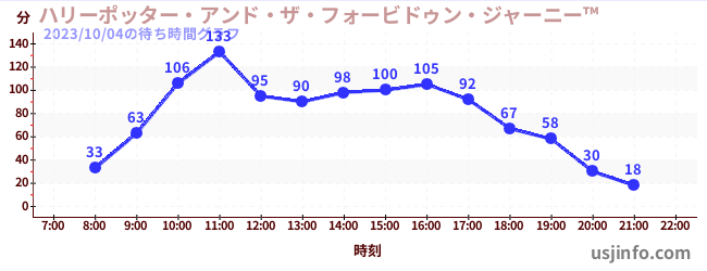 • ハリーポッター・アンド・ザ・フォービドゥン・ジャーニー™$B$N(B2023年10月04日の待ち時間