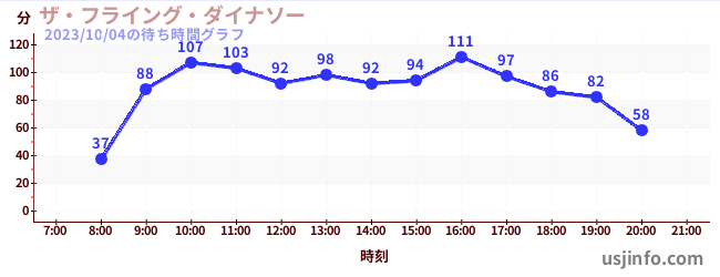 • ザ・フライング・ダイナソー$B$N(B2023年10月04日の待ち時間