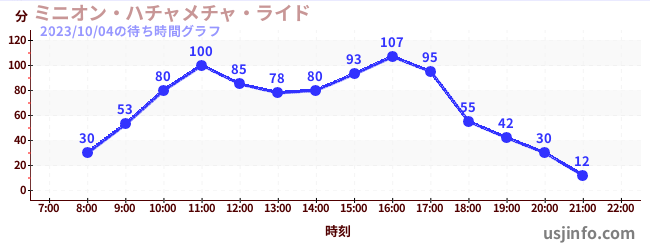 • ミニオン・ハチャメチャ・ライド$B$N(B2023年10月04日の待ち時間