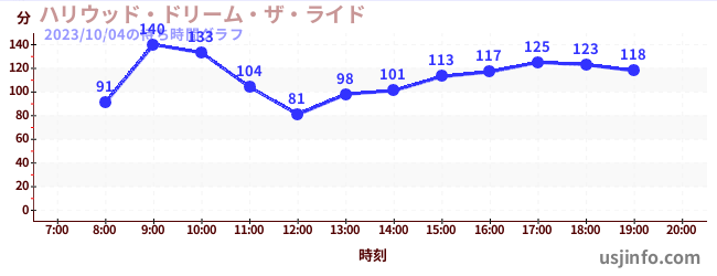 • ハリウッド・ドリーム・ザ・ライド$B$N(B2023年10月04日の待ち時間