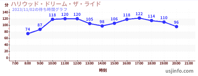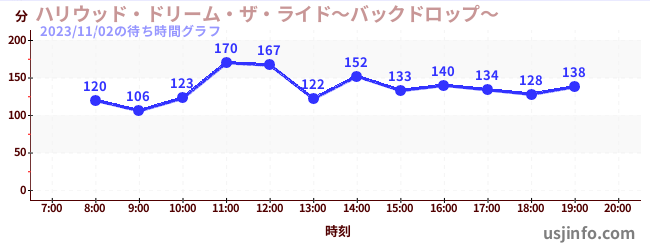 • ハリウッド・ドリーム・ザ・ライド〜バックドロップ〜$B$N(B2023年11月02日の待ち時間
