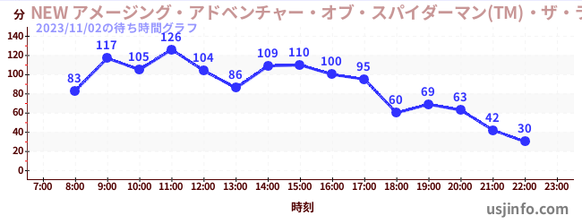 • NEW アメージング・アドベンチャー・オブ・スパイダーマン(TM)・ザ・ライド 4K3D$B$N(B2023年11月02日の待ち時間