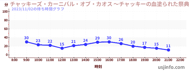 • チャッキーズ・カーニバル・オブ・カオス ~チャッキーの血塗られた祭典~$B$N(B2023年11月02日の待ち時間
