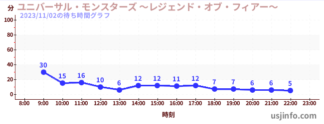 • ユニバーサル・モンスターズ ~レジェンド・オブ・フィアー~$B$N(B2023年11月02日の待ち時間
