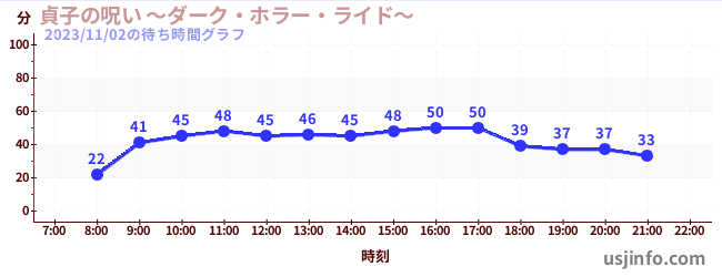 • 貞子の呪い ~ダーク・ホラー・ライド~$B$N(B2023年11月02日の待ち時間