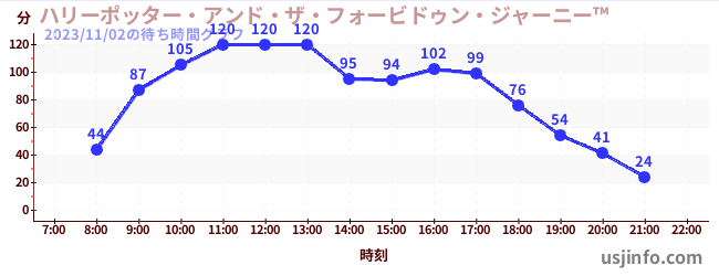 • ハリーポッター・アンド・ザ・フォービドゥン・ジャーニー™$B$N(B2023年11月02日の待ち時間