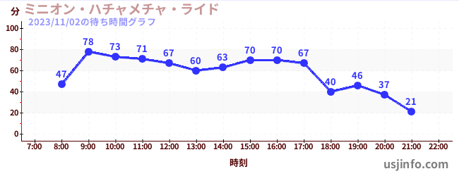 • ミニオン・ハチャメチャ・ライド$B$N(B2023年11月02日の待ち時間