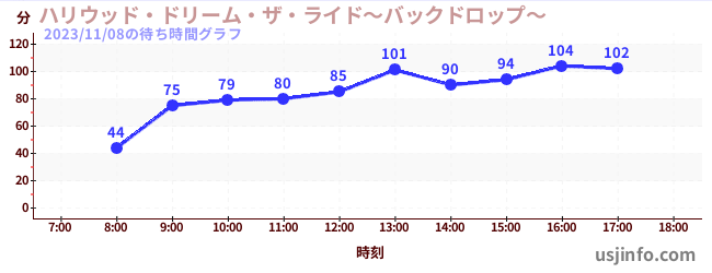• ハリウッド・ドリーム・ザ・ライド〜バックドロップ〜$B$N(B2023年11月08日の待ち時間