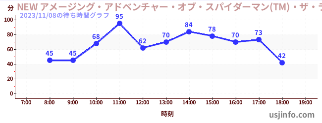 • NEW アメージング・アドベンチャー・オブ・スパイダーマン(TM)・ザ・ライド 4K3D$B$N(B2023年11月08日の待ち時間