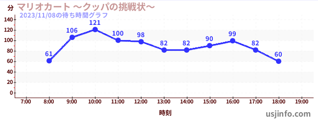 • マリオカート ~クッパの挑戦状~$B$N(B2023年11月08日の待ち時間