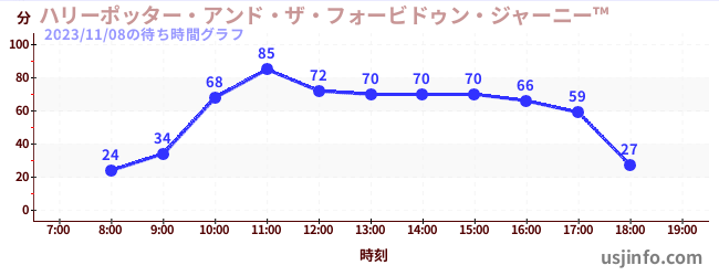 • ハリーポッター・アンド・ザ・フォービドゥン・ジャーニー™$B$N(B2023年11月08日の待ち時間