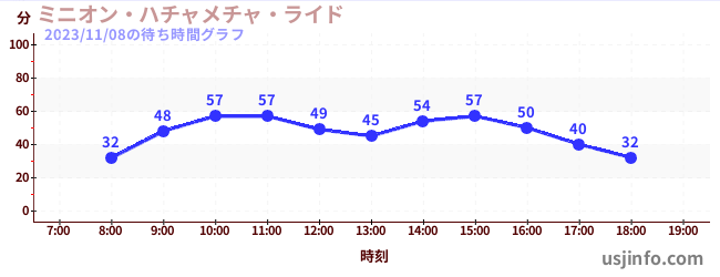 • ミニオン・ハチャメチャ・ライド$B$N(B2023年11月08日の待ち時間