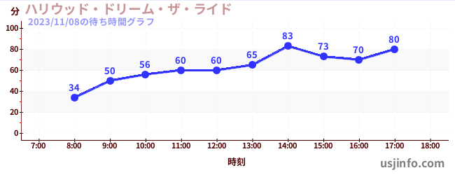 • ハリウッド・ドリーム・ザ・ライド$B$N(B2023年11月08日の待ち時間