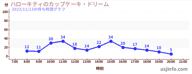 • ハローキティのカップケーキ・ドリーム$B$N(B2023年11月13日の待ち時間