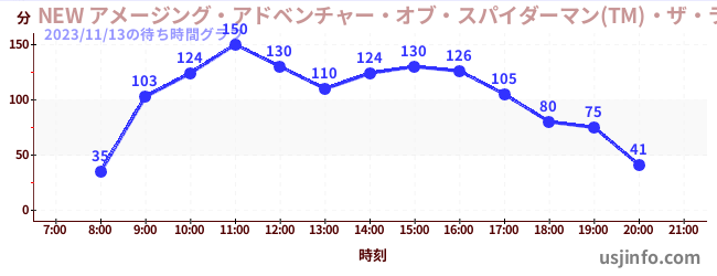 • NEW アメージング・アドベンチャー・オブ・スパイダーマン(TM)・ザ・ライド 4K3D$B$N(B2023年11月13日の待ち時間
