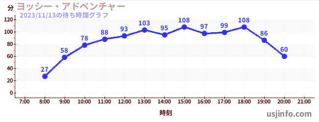 • ヨッシー・アドベンチャー$B$N(B2023年11月13日の待ち時間