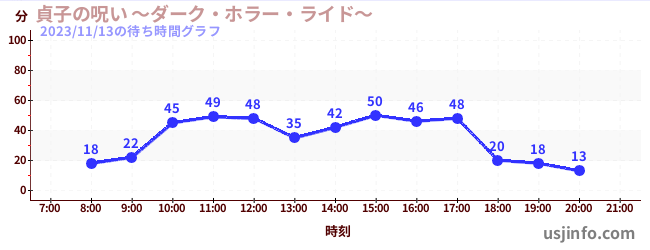 • 貞子の呪い ~ダーク・ホラー・ライド~$B$N(B2023年11月13日の待ち時間