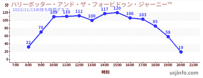 • ハリーポッター・アンド・ザ・フォービドゥン・ジャーニー™$B$N(B2023年11月13日の待ち時間