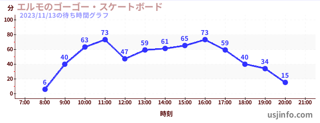 • ジョーズ(R)$B$N(B2023年11月13日の待ち時間