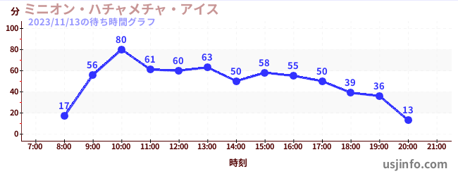 • ミニオン・ハチャメチャ・アイス$B$N(B2023年11月13日の待ち時間