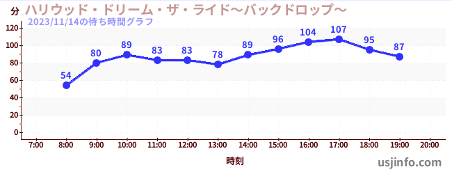 • ハリウッド・ドリーム・ザ・ライド〜バックドロップ〜$B$N(B2023年11月14日の待ち時間