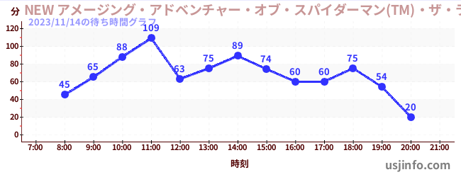 • NEW アメージング・アドベンチャー・オブ・スパイダーマン(TM)・ザ・ライド 4K3D$B$N(B2023年11月14日の待ち時間