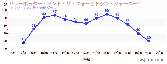 • ハリーポッター・アンド・ザ・フォービドゥン・ジャーニー™$B$N(B2023年11月14日の待ち時間