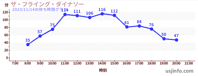 • ザ・フライング・ダイナソー$B$N(B2023年11月14日の待ち時間