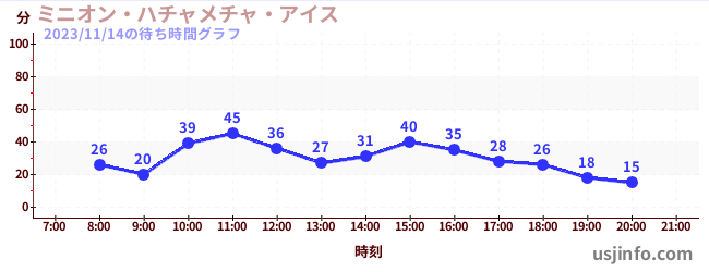 • ミニオン・ハチャメチャ・アイス$B$N(B2023年11月14日の待ち時間