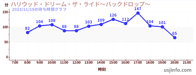 • ハリウッド・ドリーム・ザ・ライド〜バックドロップ〜$B$N(B2023年11月19日の待ち時間