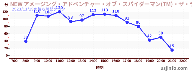 • NEW アメージング・アドベンチャー・オブ・スパイダーマン(TM)・ザ・ライド 4K3D$B$N(B2023年11月19日の待ち時間