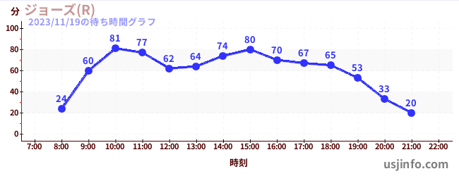 • ジョーズ(R)$B$N(B2023年11月19日の待ち時間