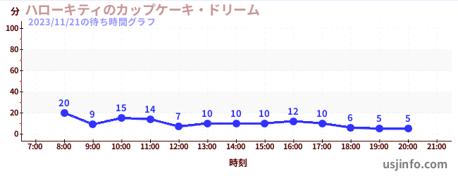 • ハローキティのカップケーキ・ドリーム$B$N(B2023年11月21日の待ち時間