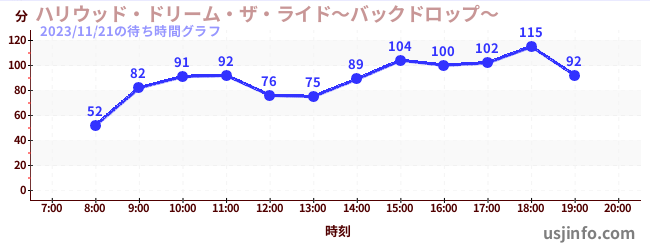 • ハリウッド・ドリーム・ザ・ライド〜バックドロップ〜$B$N(B2023年11月21日の待ち時間