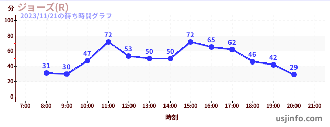 • ジョーズ(R)$B$N(B2023年11月21日の待ち時間