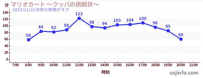 • マリオカート ~クッパの挑戦状~$B$N(B2023年11月21日の待ち時間