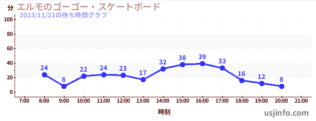 • エルモのゴーゴー・スケートボード$B$N(B2023年11月21日の待ち時間