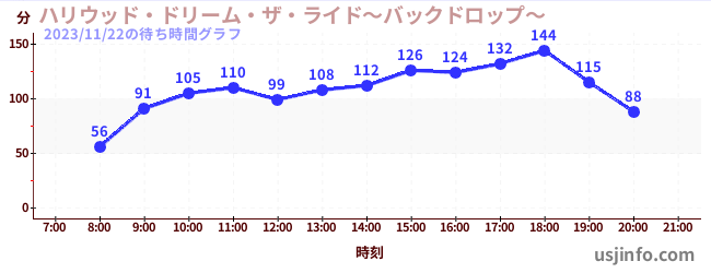• ハリウッド・ドリーム・ザ・ライド〜バックドロップ〜$B$N(B2023年11月22日の待ち時間