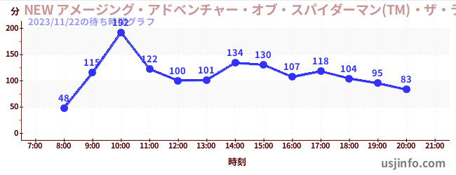 • NEW アメージング・アドベンチャー・オブ・スパイダーマン(TM)・ザ・ライド 4K3D$B$N(B2023年11月22日の待ち時間