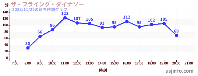 • ザ・フライング・ダイナソー$B$N(B2023年11月22日の待ち時間